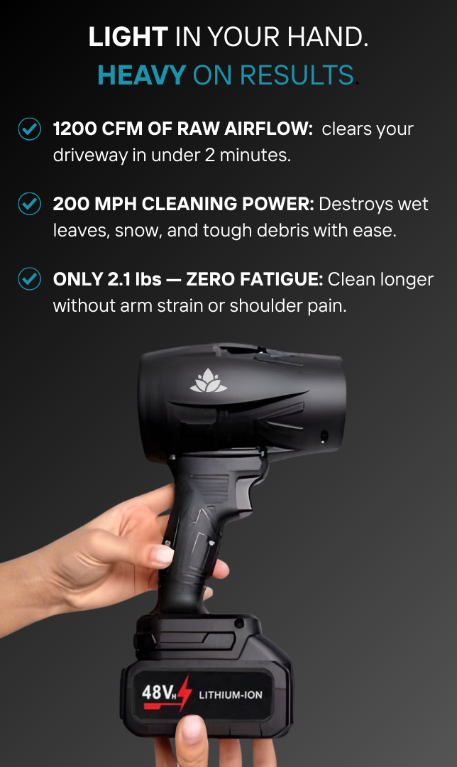 With up to 1200 CFM of raw airflow and 200 MPH jet speed, the BlowerPro V2 makes quick work of leaves, dust, snow, and debris — clearing your patio or driveway in under 2 minutes.
