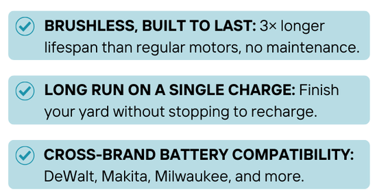 Its advanced battery system delivers a long runtime on a single charge, so you can finish your entire yard without interruption.